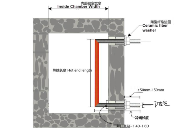 • Cold Zone Length: Furnace wall thickness + 50–150 mm external connection allowance. This prevents end overheating if too short and avoids an extended non‑heating zone if too long.
