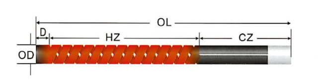 | External Diameter | Hot Zone Length | Cold End Length | Overall Length | |||||
