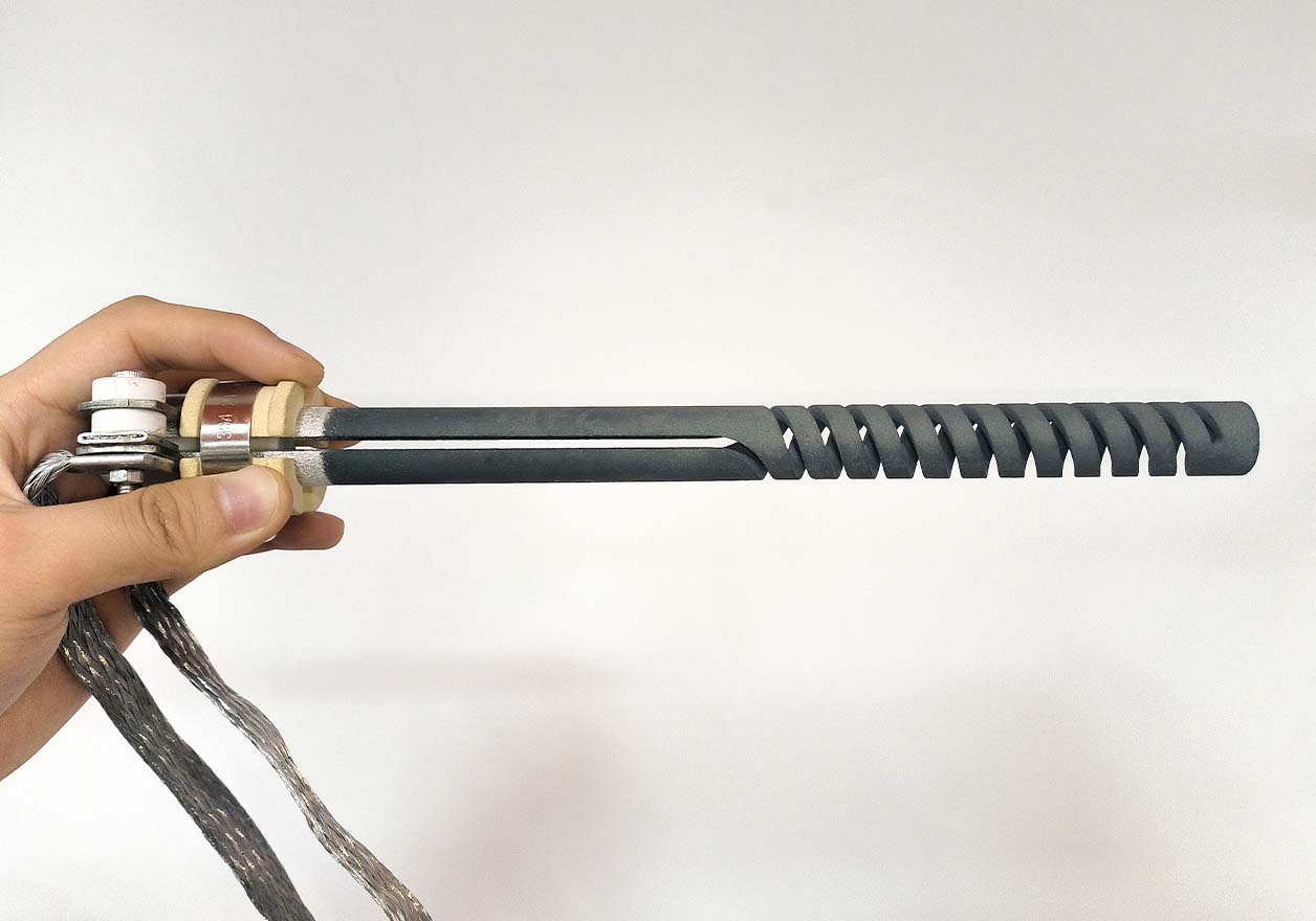 The silicon carbide (SiC) heating element is a non-metallic resistor made from high-purity α-SiC, recrystallized at 2200°C. It operates on the Joule heating principle, converting electricity into heat upon current flow.