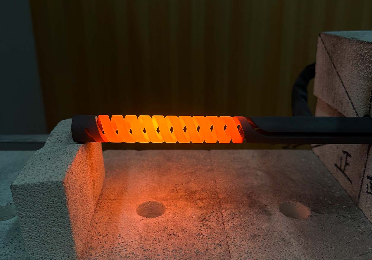 The SGR-type silicon carbide heating element features a double-spiral cold-end design, which optimizes resistance distribution via spiral grooves to ensure uniform heating and high-efficiency energy conversion. With a high-density hot zone (up to 2.96 g/cm³) and a maximum service temperature of 1625°C, it is ideal for demanding high-temperature applications such as zirconia sintering, new energy battery material processing, and industrial kilns.